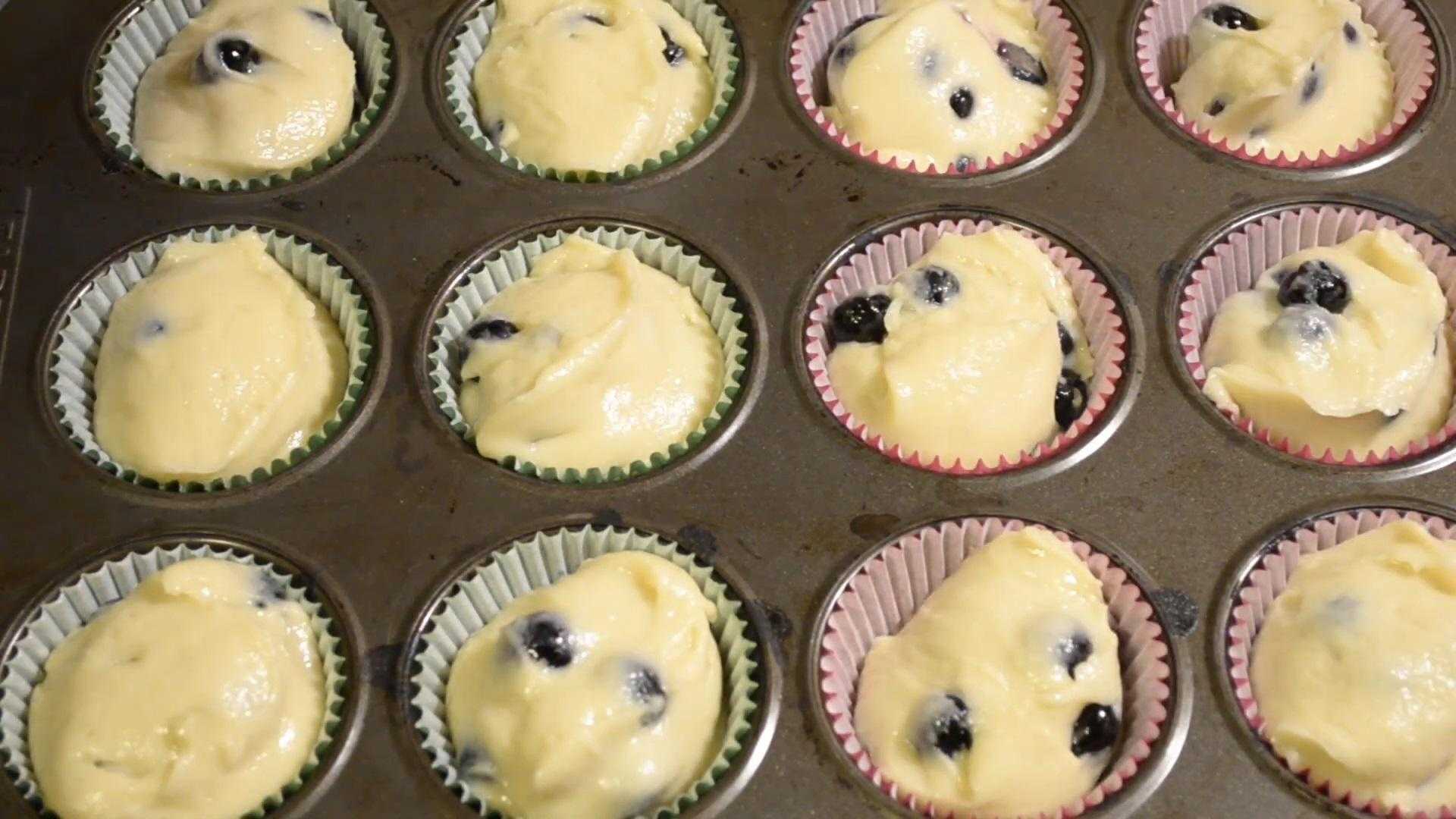 Тесто для маффинов всегда готовится полужидкое. Ему ненужно стоять. Достаточно соединить все ингредиенты, тщательно размешать. Затем массу раскладывают по формочкам и сразу отправляют в духовку.