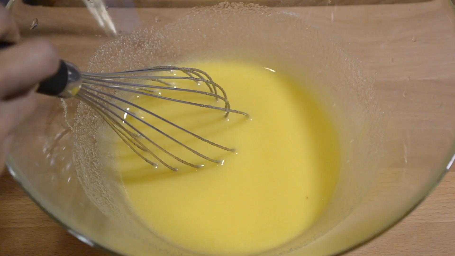 Взбиваем в миске яйца с сахаром — миксером или венчиком, пару минут до лёгкой пышности.