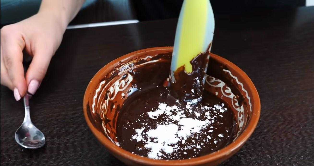 Шоколад раскалываем на дольки, топим на «водяной бане». Следим за температурой — работаем на медленном огне, чтобы не допустить перегрева и сворачивания шоколадной массы. Не забываем, что вода в нижней емкости не должна соприкасаться с дном верхней миски. Все время помешивая, доводим состав до гладкости и растворения всех сгустков. Добившись нужной текстуры, сразу снимаем шоколад с огня, остужаем до чуть теплого состояния.
