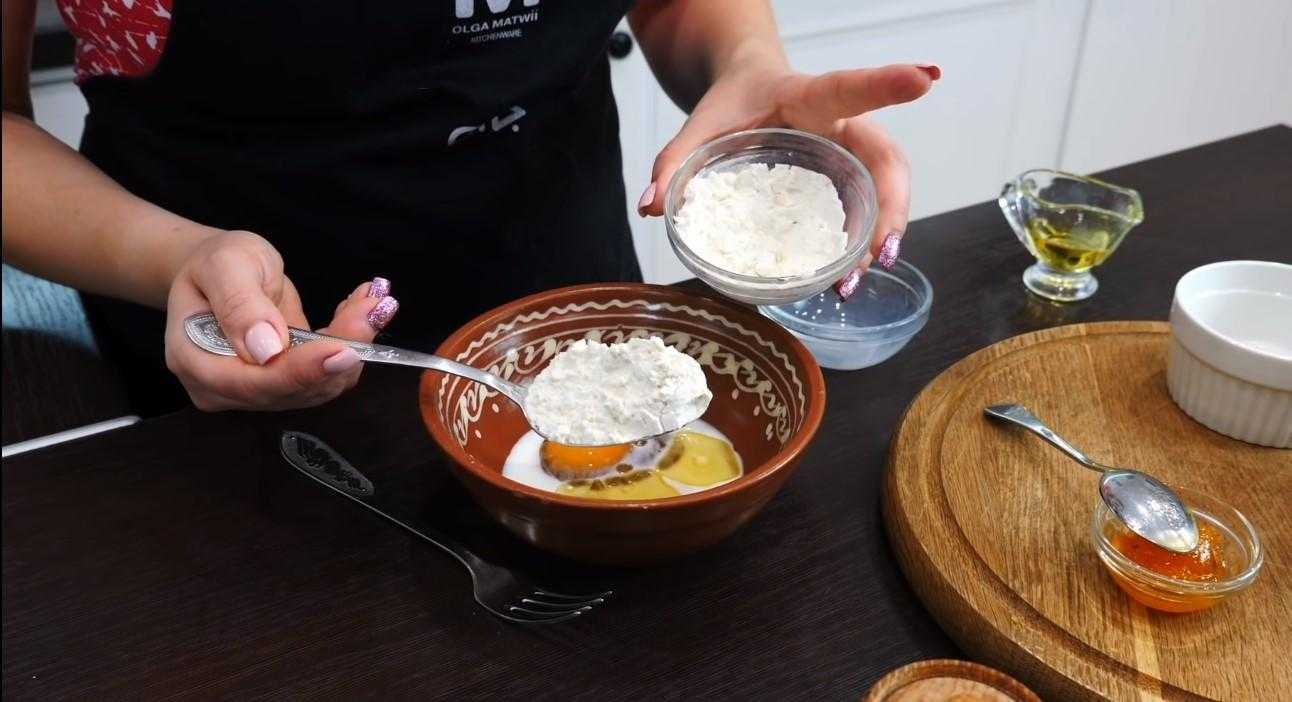 - В отдельную емкость просеиваем муку, смешиваем ее с разрыхлителем и содой;