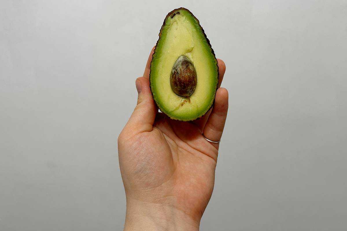 Авокадо должно быть спелым, мягким при сжимании, с серединкой нежно-зеленого цвета