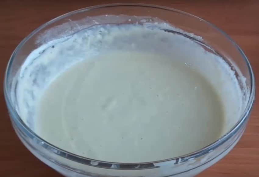 Перемешиваем и обратите внимание какой консистенции тесто получается. Оно не сильно жидкое