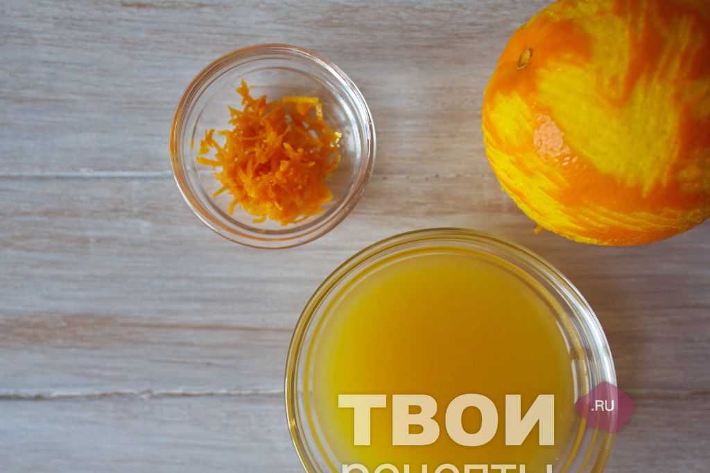 Мелкой тёркой с апельсина снять цедру, выдавить сок, если попадутся косточки, отфильтровать.