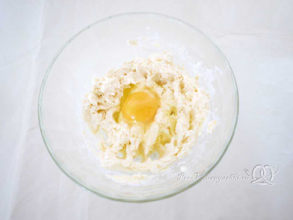 Взбить однородный крем из масла, сахара и яиц. Все крупинки должны раствориться. Если выпечка нужна не очень приторная, количество сахара можно убавить на треть.
