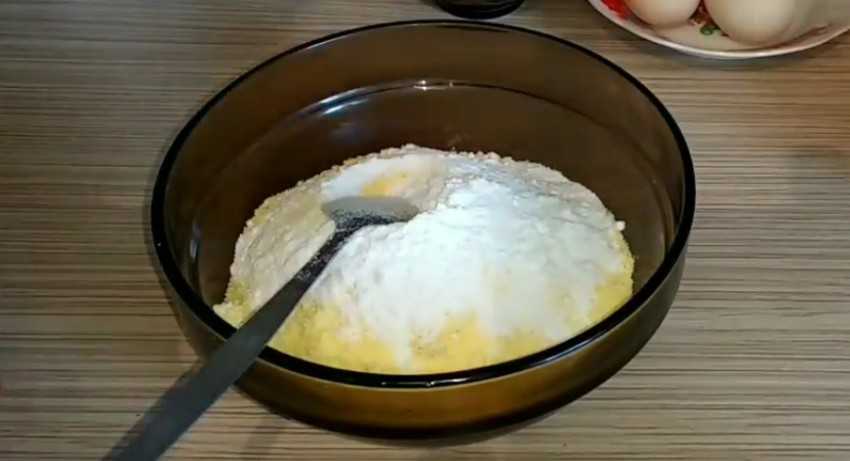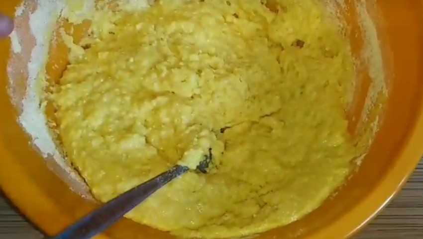 - К тесту следует добавить яйцо и кукурузное масло.