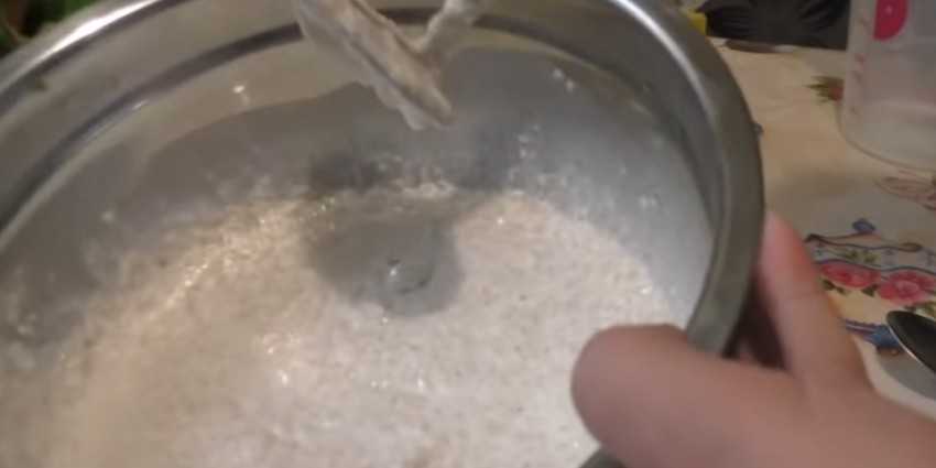- К сухой смеси нужно постепенно добавлять воду, периодически помешивая тесто.