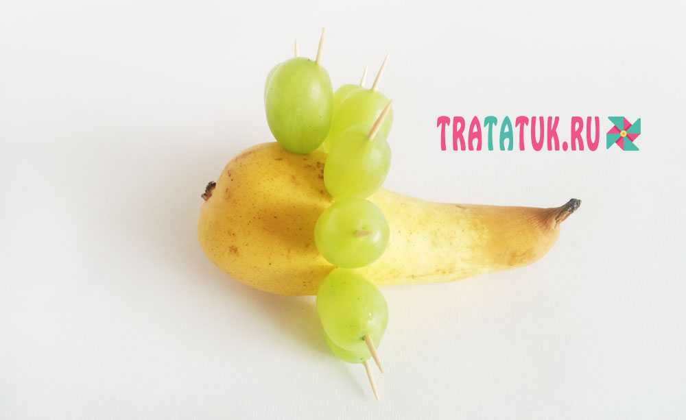Очень забавная и съедобная поделка из фруктов, которая украсит любой стол на детском празднике.