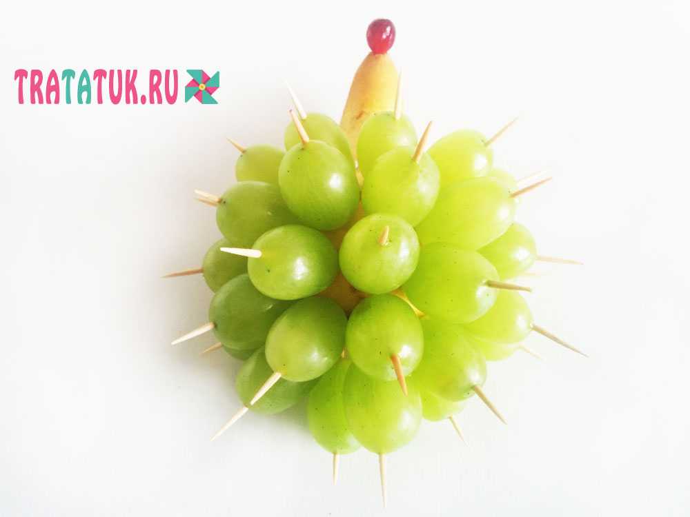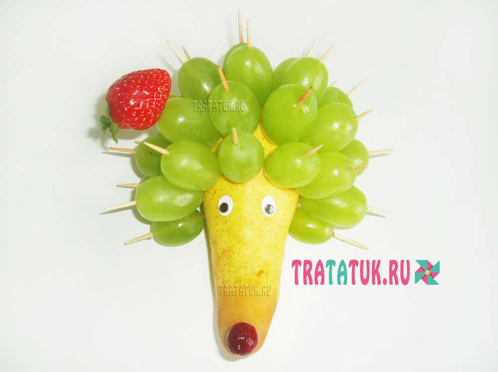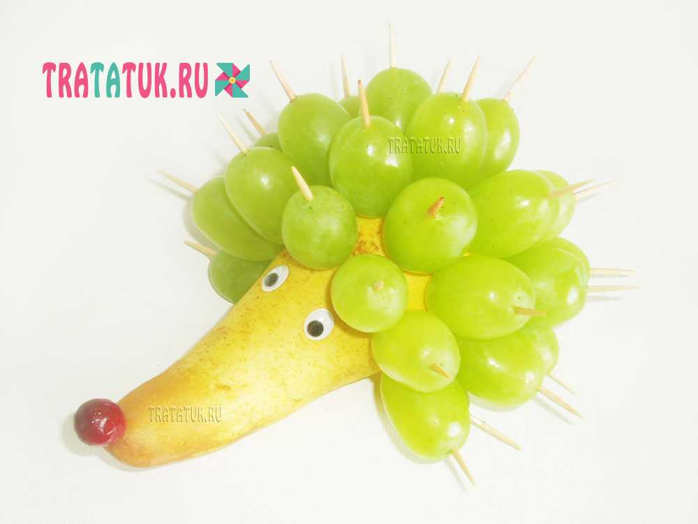 Ежик из груши и винограда пошагово