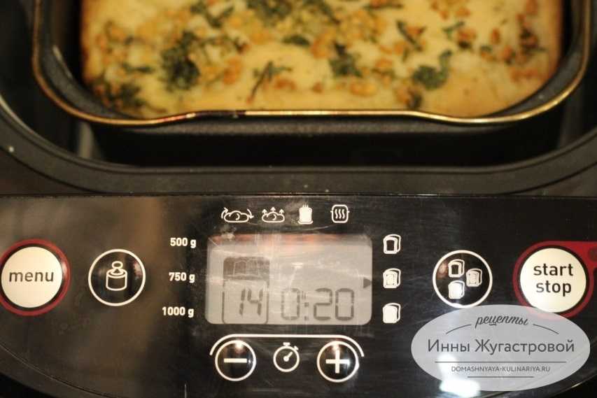 Но, поскольку чесночная заправка содержит жидкость, я советую дополнительно допечь хлеб на режиме 14 (выпечка) 10-20 минут, чтобы он стал более золотистым.