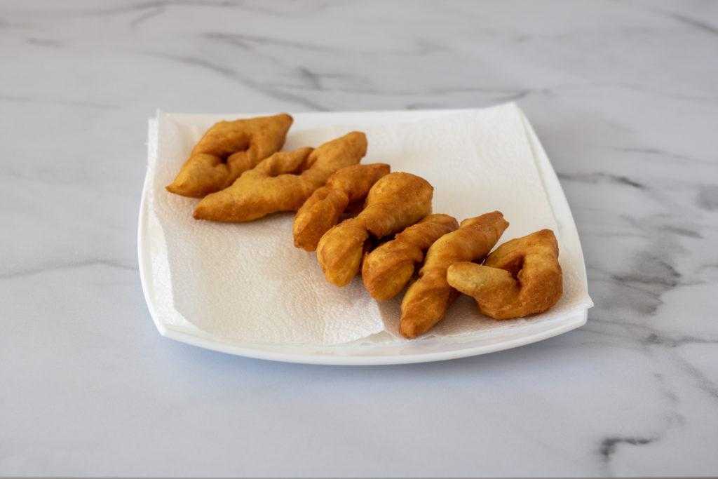 8. Обсушите хворост на бумажном полотенце. После того как десерт полностью остынет, его можно по желанию украсить и подавать к столу.