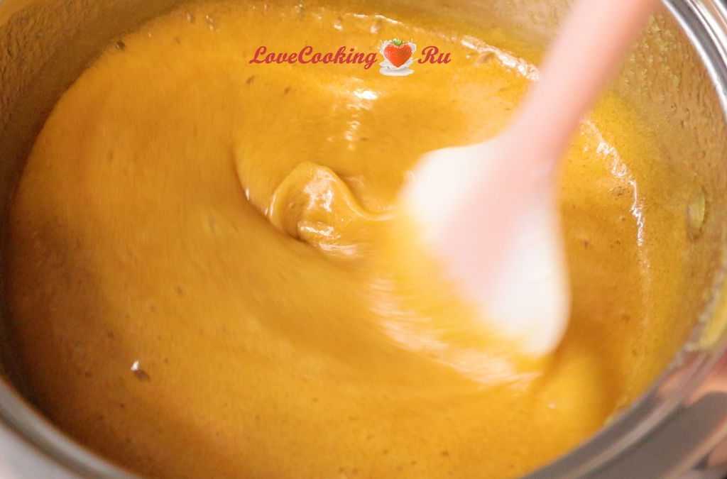 - Полученную смесь, непрерывно помешивая, варите на медленном огне до загустения.