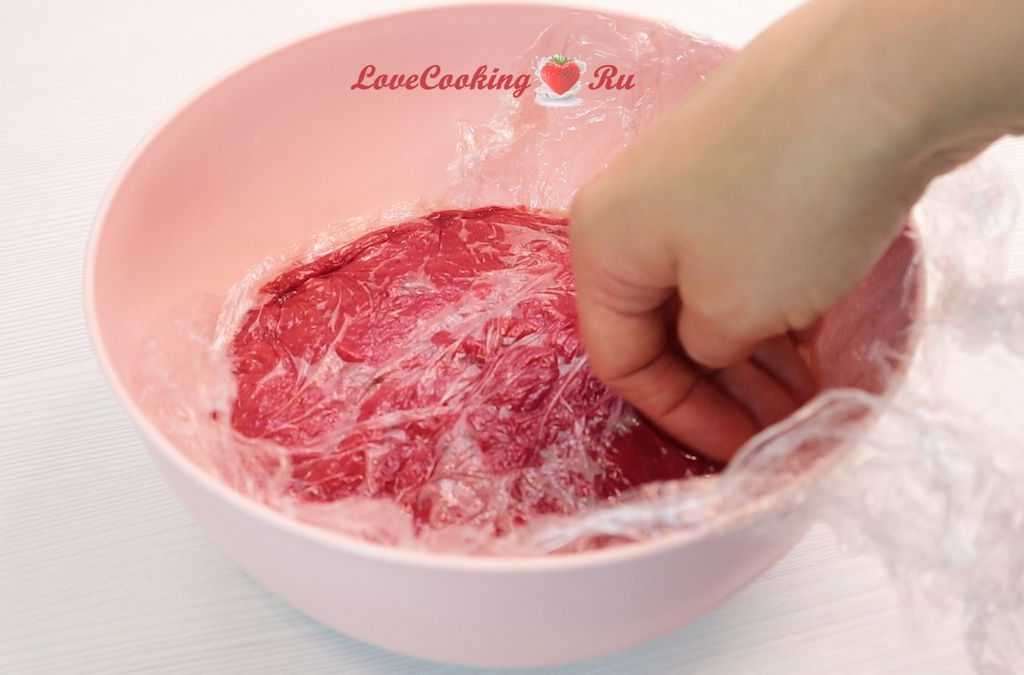 - Накрыть пищевой пленкой, поставить в холодильник для созревания на 3 часа.
