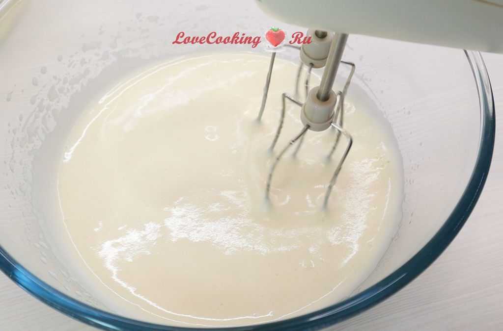 - Затем добавьте в сметану сахар и миксером на высокой скорости взбивайте 15-20 минут до увеличения массы в объеме, густоты и воздушности.