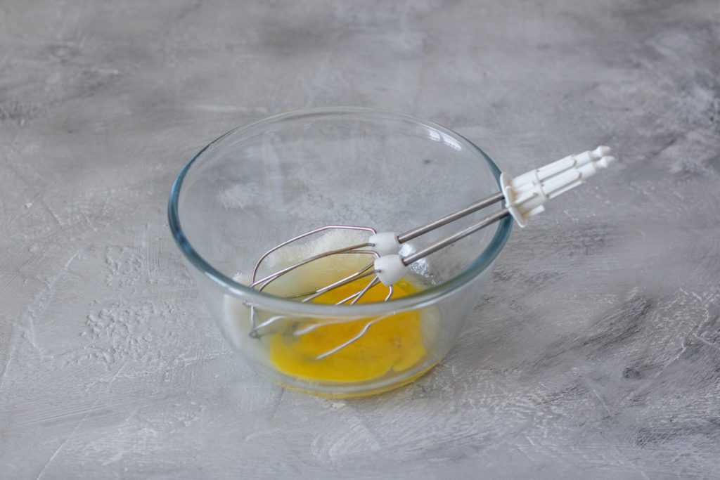 3. Пробейте яйца с сахаром до посветления и пышности. Делать крепкую пену не нужно. Тыква и творог все равно разрушат пузырьки воздуха, и она потеряет объем.