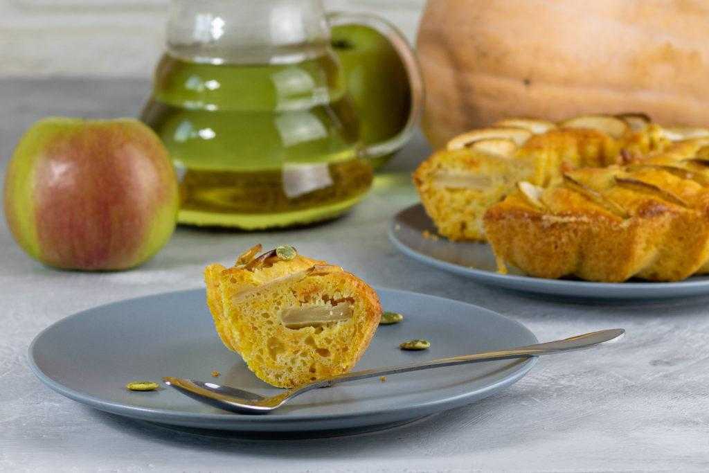 В этом рецепте яблоки используются не как часть теста. Это, в первую очередь, элемент декора с ярким вкусом. Эту технику, при желании, можно применять и в других тыквенно-яблочных рецептах.