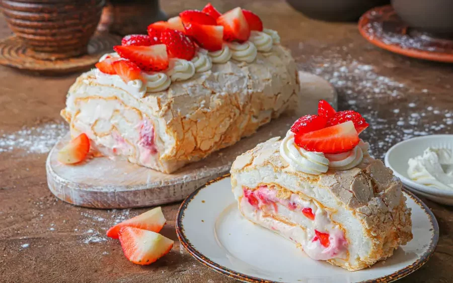 Рецепт приготовления меренгового рулета с клубникой и сыром маскарпоне
