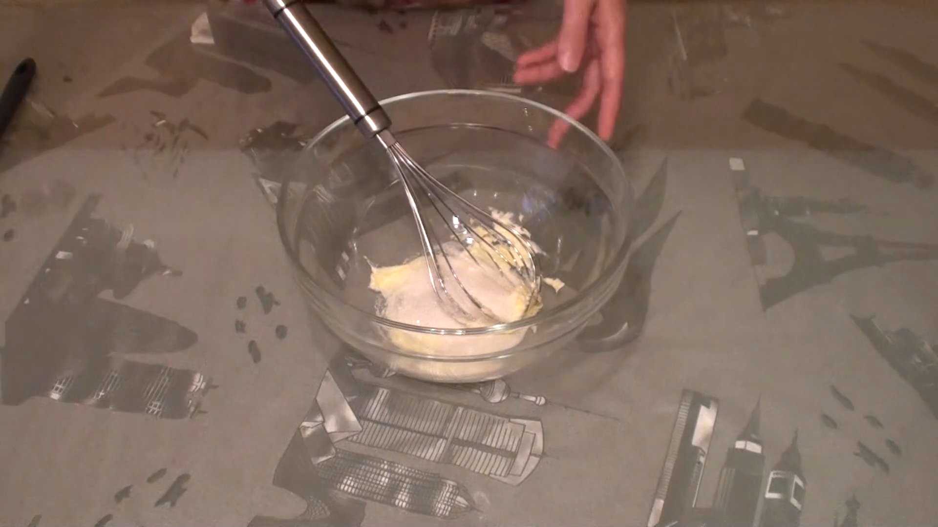 - Взбить в одной посуде теплое масло с сахарным песком. Влить тонкой струей жидкий мед и воду, хорошенько перемешать, чтобы получилась смесь однородной консистенции.