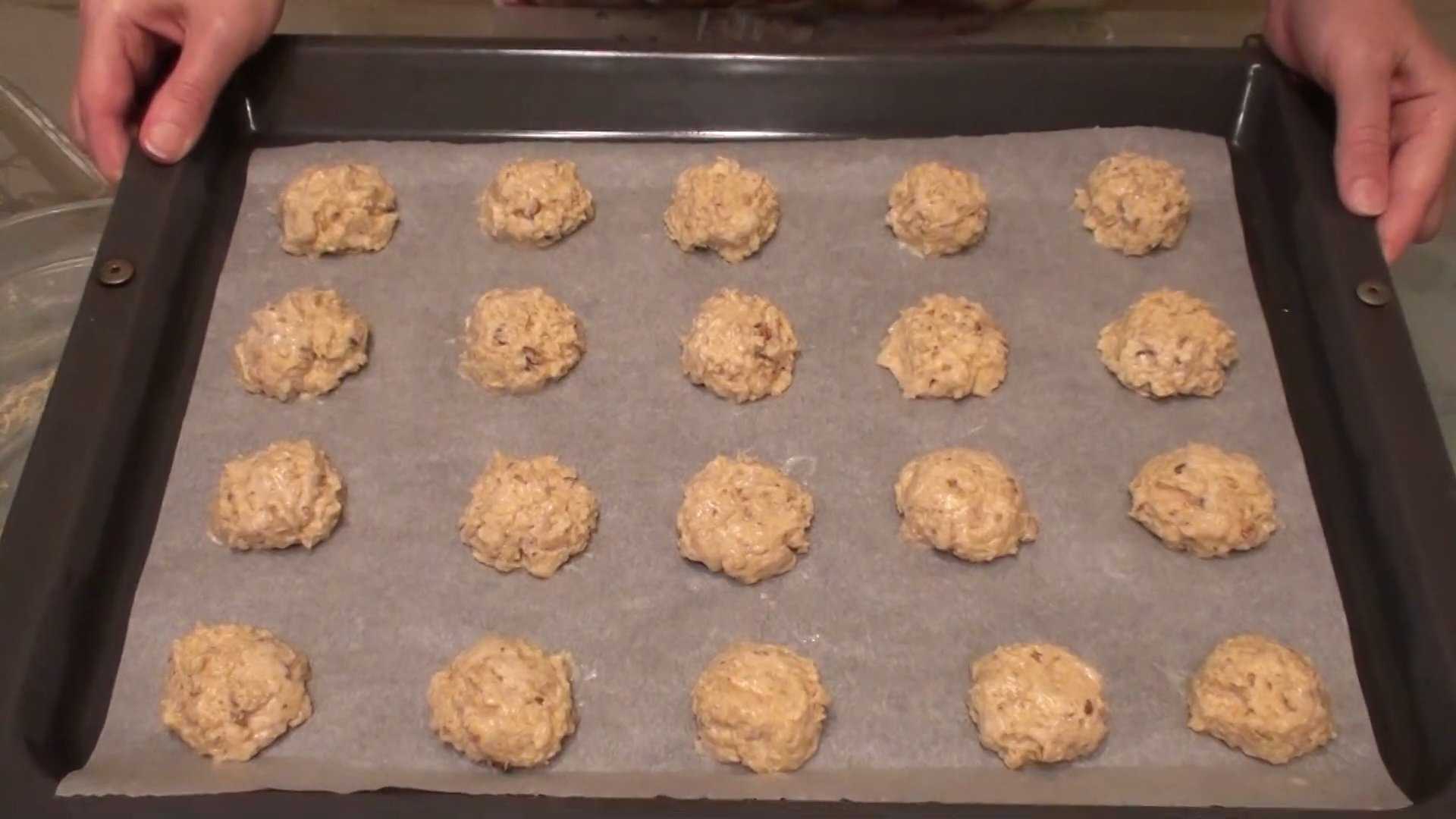 - Сформируйте руками небольшие шарики (в духовке они примут форму лепешечек) и уложите на покрытый промасленной бумагой противень на расстоянии 3 см друг от друга. У вас должно получиться 12–14 шариков.