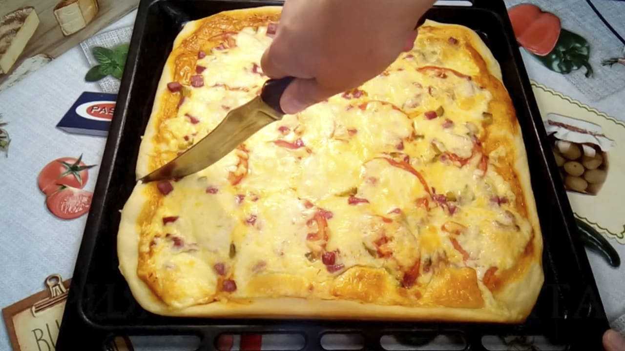 Добавьте просеянную муку и 12 г сухих дрожжей. После замешивания массу необходимо накрыть сухим полотенцем. Однако старайтесь раскатывать пласты тонко, чтобы пицца получилась примерно такой, какой она должна быть.