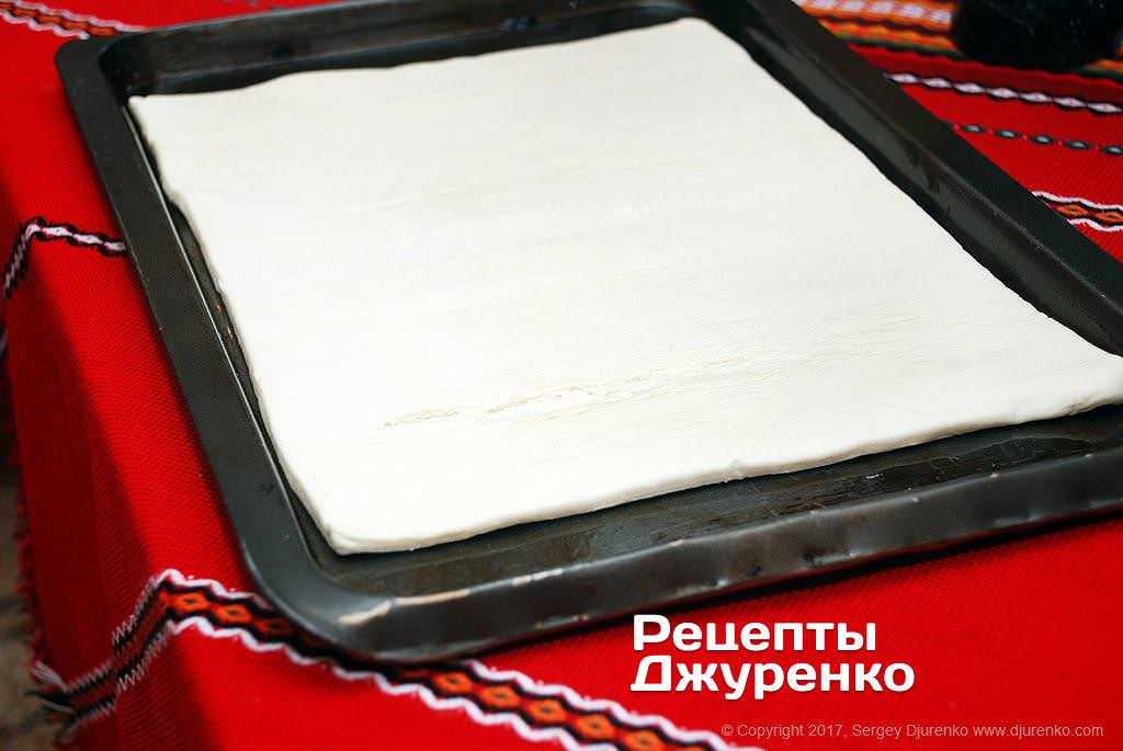 - Тесто аккуратно нужно раскатывать, а затем выложить на противень.