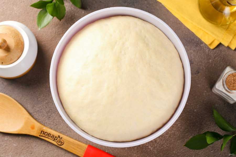 Сформируйте тесто в шар, выложите в глубокую миску, смазанную маслом, и прикройте чистым полотенцем. Оставьте тесто в теплом месте для подъема примерно на 2 часа. Когда тесто хорошо поднимется и увеличится в объеме минимум в два раза, слегка обомните его, снова прикройте полотенцем и оставьте для еще одного подъема. После с тестом можно начинать работать.