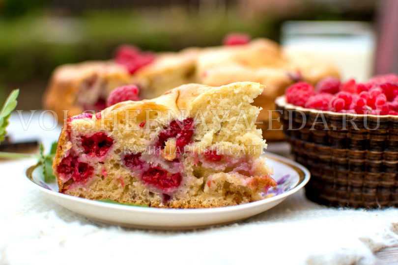 Сверху распределить ягоды. Это может быть малина, черная или красная смородина, ежевика, клубника и т. д. Для быстрого пирога можно использовать любые ягоды как в свежем, так и в замороженном виде.