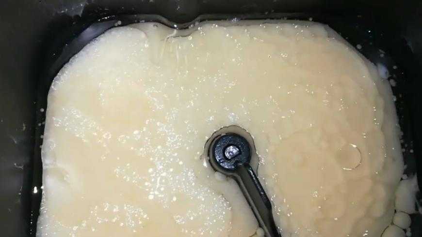 Установить на хлебопечке режим, соответствующий замешиванию дрожжевого теста.