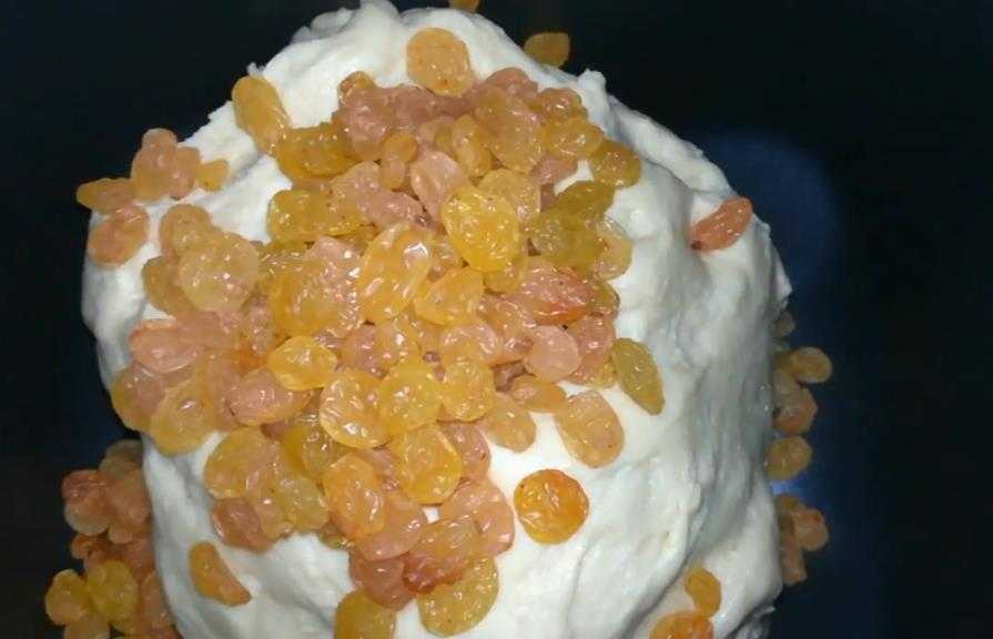 - Включаю устройство на режим «Тесто» и запускаю устройство. На протяжении около 2-х часов будет длиться перемешивание теста и его обработка. После того, как до окончания режима останется 5 минут, нужно добавить изюм. Конечно же, обязательно промываю его горячей воды, даю высушиться.