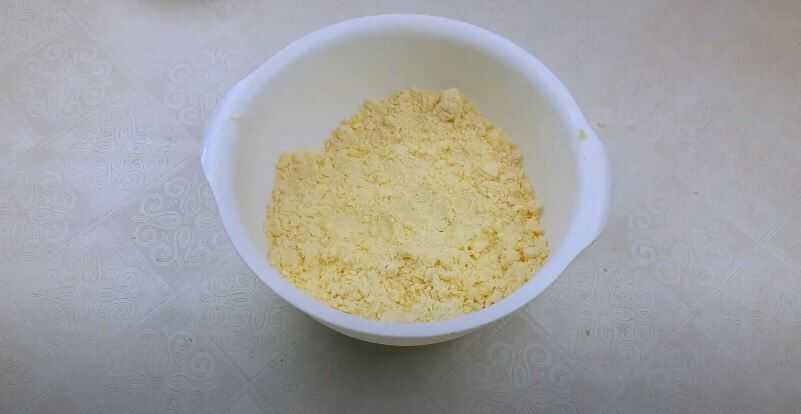 В результате должна получится крошка. Ещё раз хорошенько перемешайте массу руками, немного растирая её между ладонями.