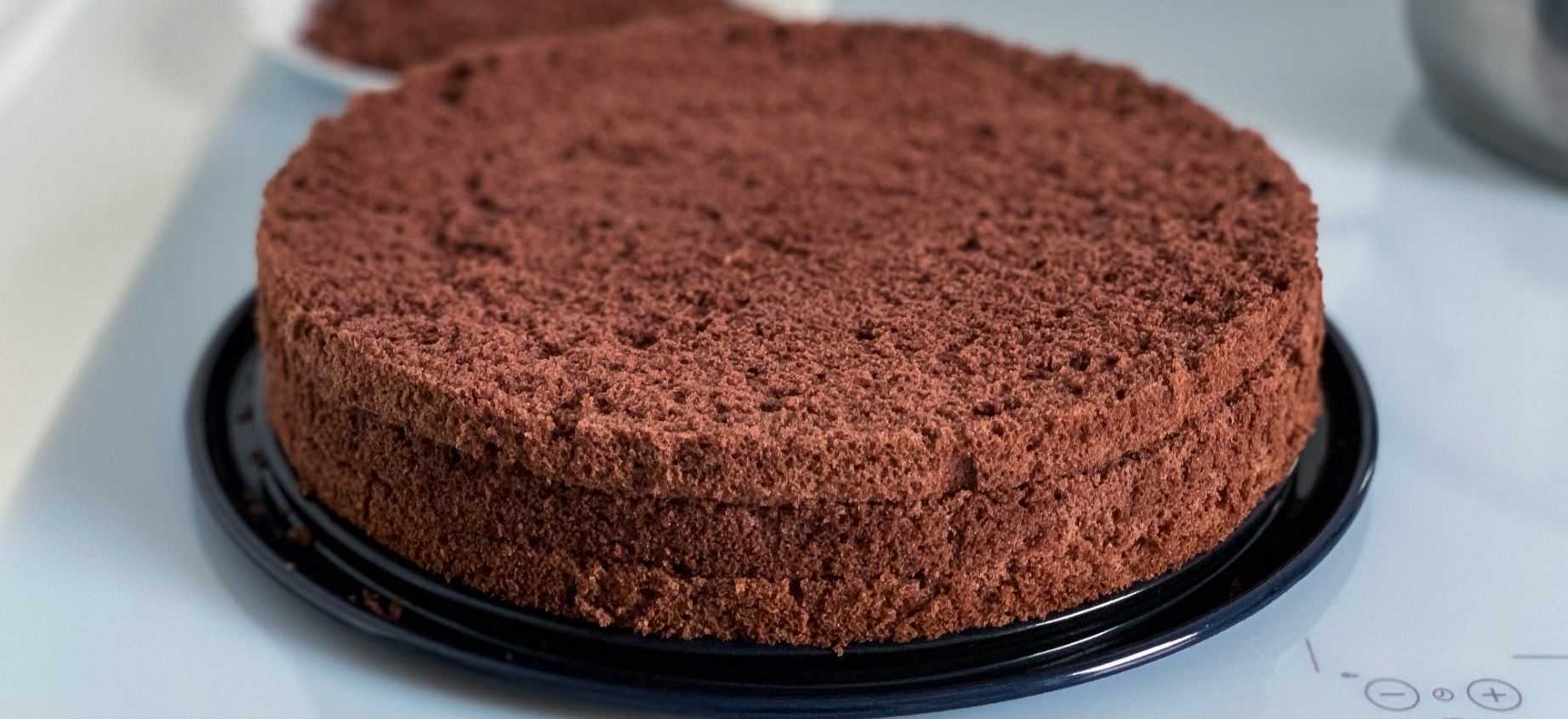 Смешать просеянную муку, соду/разрыхлитель и какао. Отделить желтки от белков, желтки растереть с сахаром до блестящей массы, а охлажденные (минут 40 в холодильнике) белки взбить миксером до устойчивой пены. Мучную смесь смешать с желтковой массой, очень хорошо растереть до однородности, после аккуратно порциями ввести взбитые белки, каждый раз хорошо вымешивая (но не долго, чтобы масса не осела). Чашу мультиварки смазать сливочным или растительным маслом, включить режим подогрева на 10 минут, после вылить тесто и оставить готовиться на режиме «Выпечка» (55 минут).