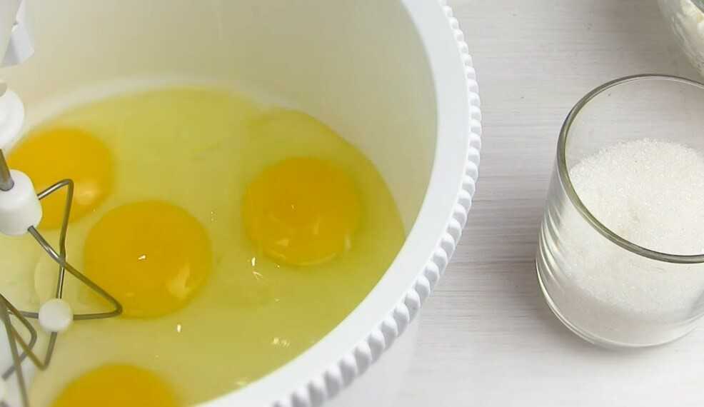 Начать процесс желательно с приготовления теста. Для этого разбиваем в миску яйца.