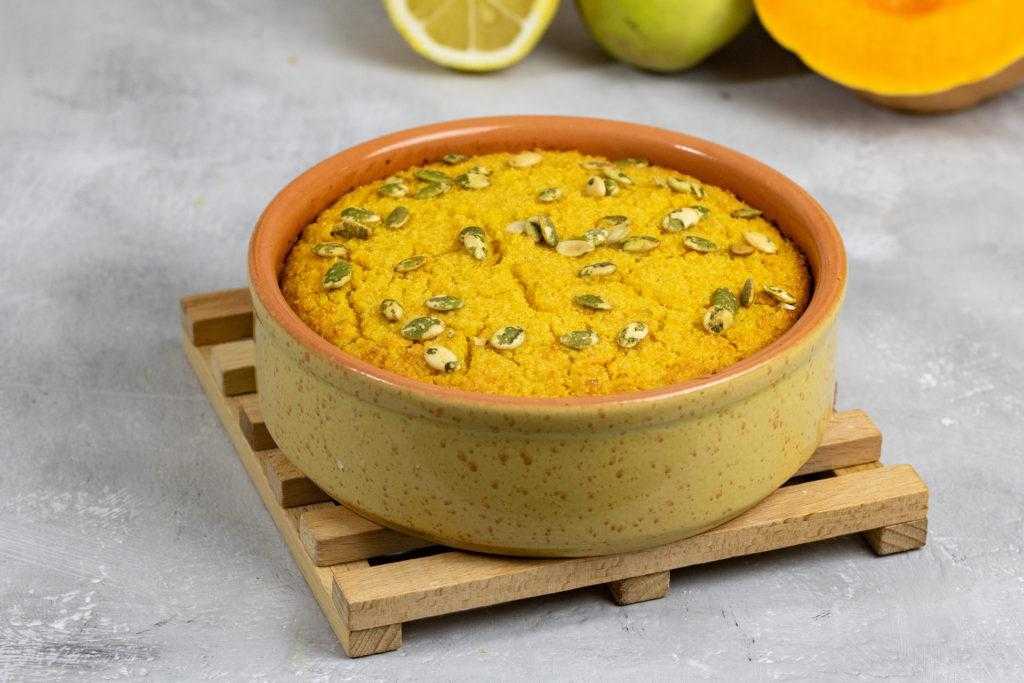 Еще одна разновидность манного пирога. Но у нее немного иная текстура, благодаря использованию сливочного масла. К тому же добавление яблочного пюре продемонстрирует вам новые нотки тыквенного звучания в десертах.