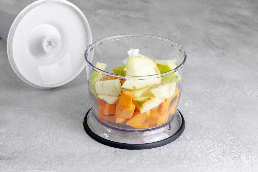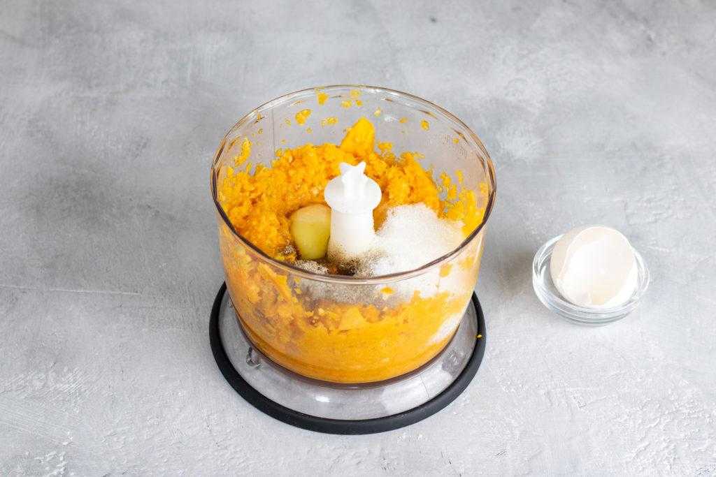 Тыкву нужно отделить от кожуры и измельчить при помощи блендера до кашеобразного состояния.