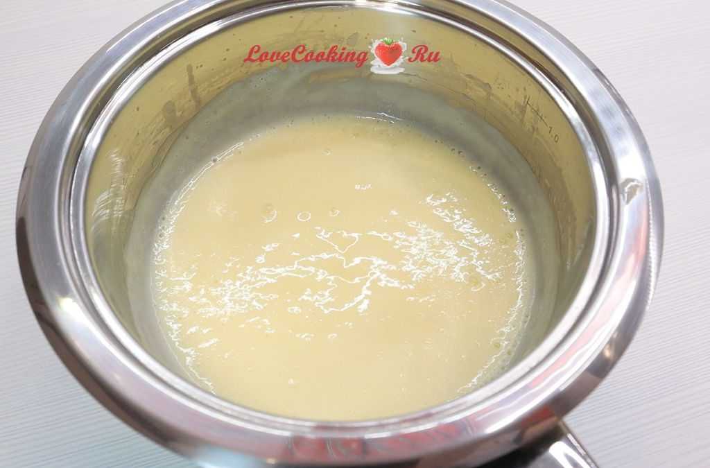Переливаем в сотейник. Доводим до кипения на средне-медленном огне, постоянно перемешивая.