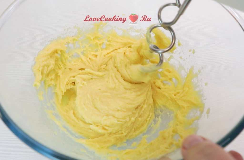 Постепенно добавляем яйцо и желтки + ванилин, продолжая взбивать до однородной массы.