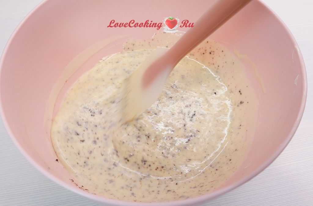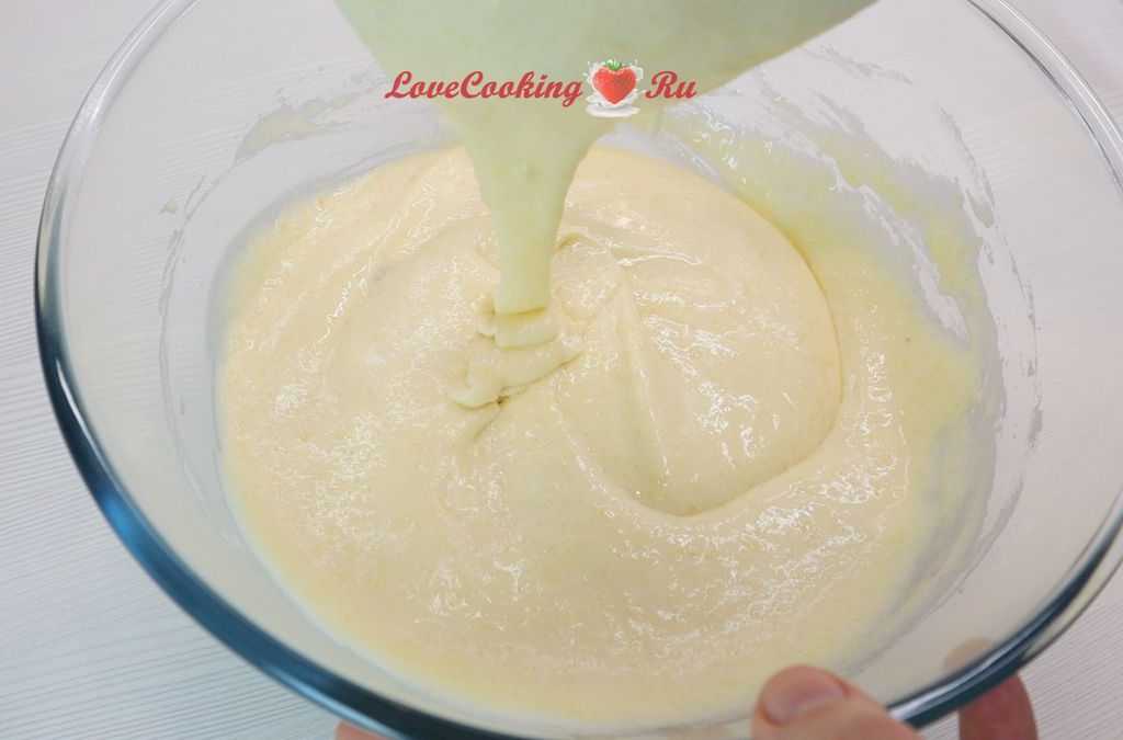 После того как все жидкие компоненты соединены, к ним отправляется смесь сыпучих составляющих. Отставить тесто на время в сторону.