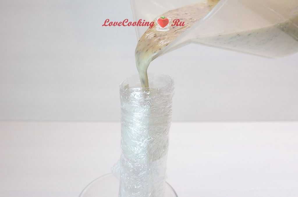 Переливаем кремю в трубочку. Закрываем пищевой плёнкой второй конец.