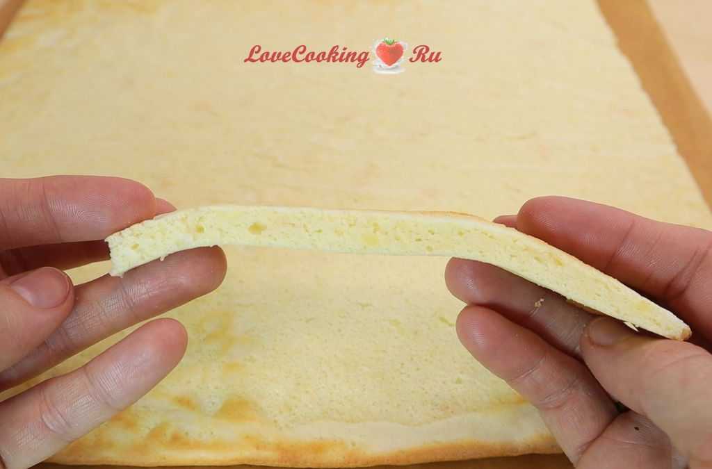 · Время выпекания зависит от толщины теста. Если вам нужен тонкий лист для рулета, достаточно 10 минут. Бисквит, который предполагается разрезать слоями, нужно выпекать не меньше 45-60 минут.