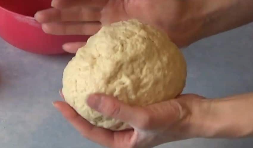 - Смажьте руки растительным маслом, так как тесто получится мягким, как дрожжевое. Хорошо вымесив тесто, прикройте его полотенцем и дайте постоять около 20 минут и разбухнуть.