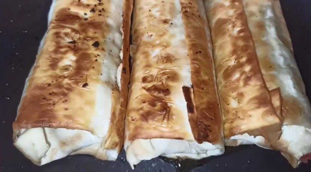Плотно заворачиваем в трубочку, обжариваем на сухой сковороде.