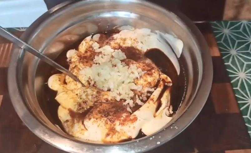 2. Замариновать курочку в соусе. По желанию, можно добавить соли, но я этого не делаю. Пусть в таком виде мяско помаринуется 15 минут. За это время можно подготовить остальные составляющие.