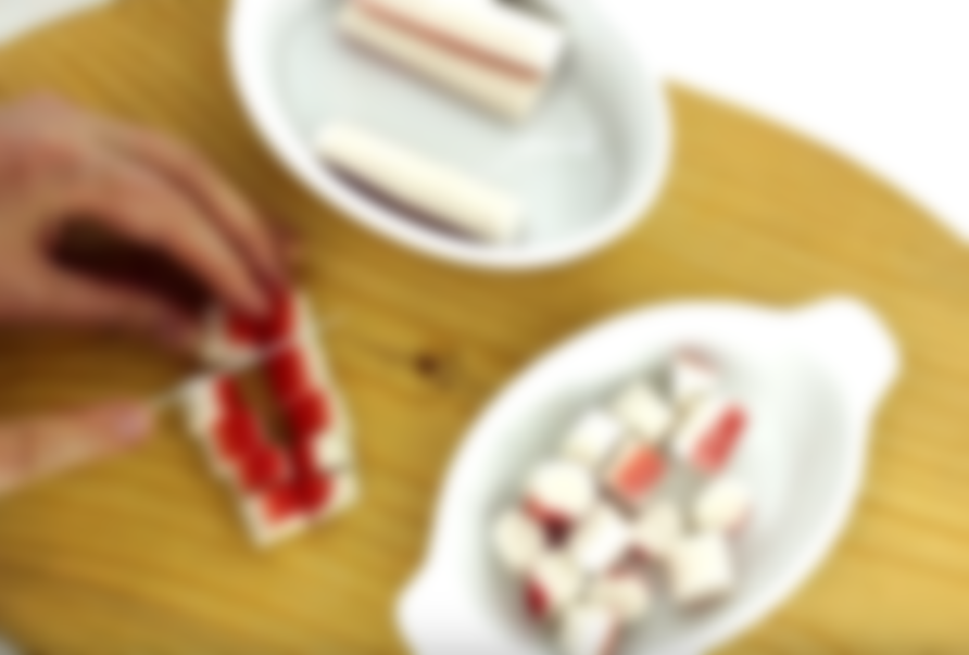 Шаг 2. Шпроты извлеките из банки и разрежьте на четыре части.