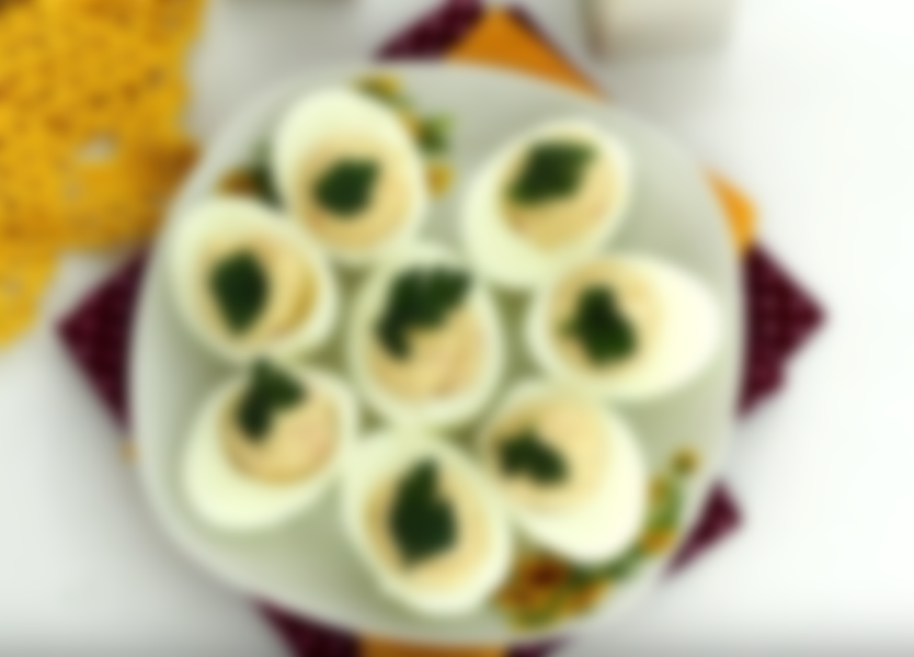 - Начиняем наши половинки белков и красиво распределяем по тарелке, приятного аппетита.