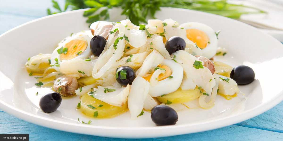Рецепт из Порту за авторством José Luís Gomes de Sá. Кусочки трески (вымоченные в молоке, чтобы стали еще мягче), картофель, вареное яйцо, маслины и зелень. Ингредиенты как в Бакаляу а Браж, но приготовлено совсем по-другому.