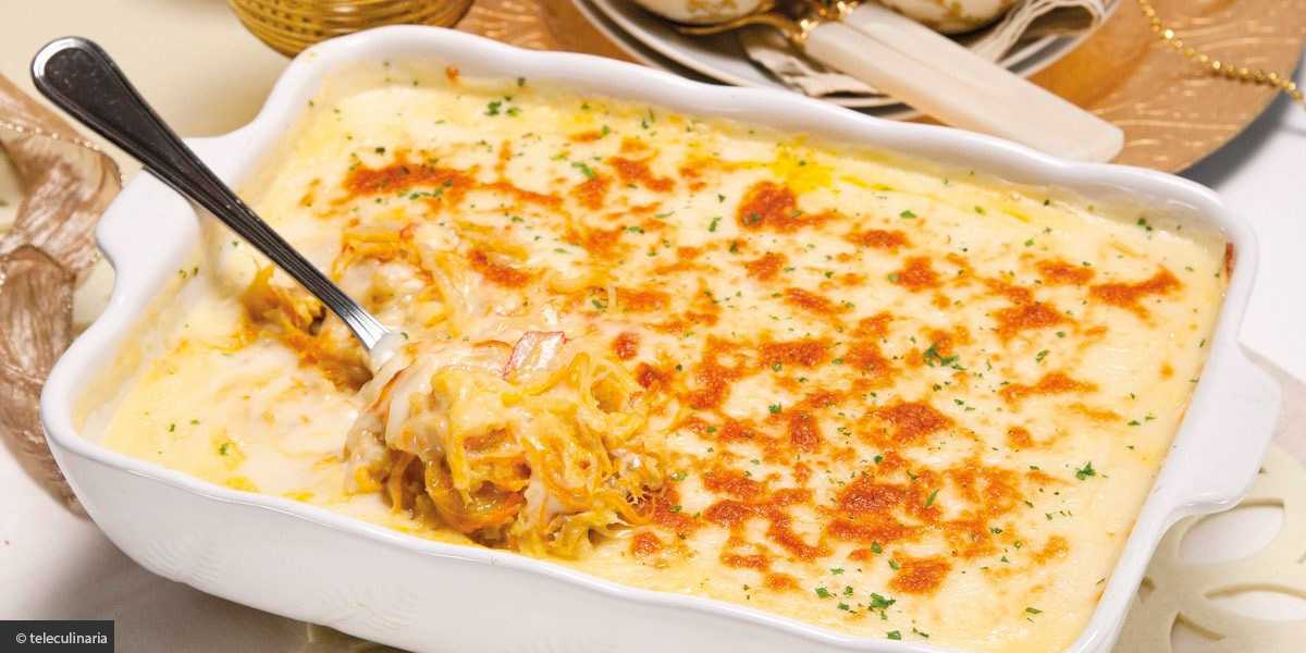 Рецепт появившийся в 1940 году, но модный до сих пор. Тоже авторский и тоже из города Порту. Запеканка из кусочков филе бакаляу, картофельного пюре, сладкого перца, лаврового листа, маслин и майонеза.