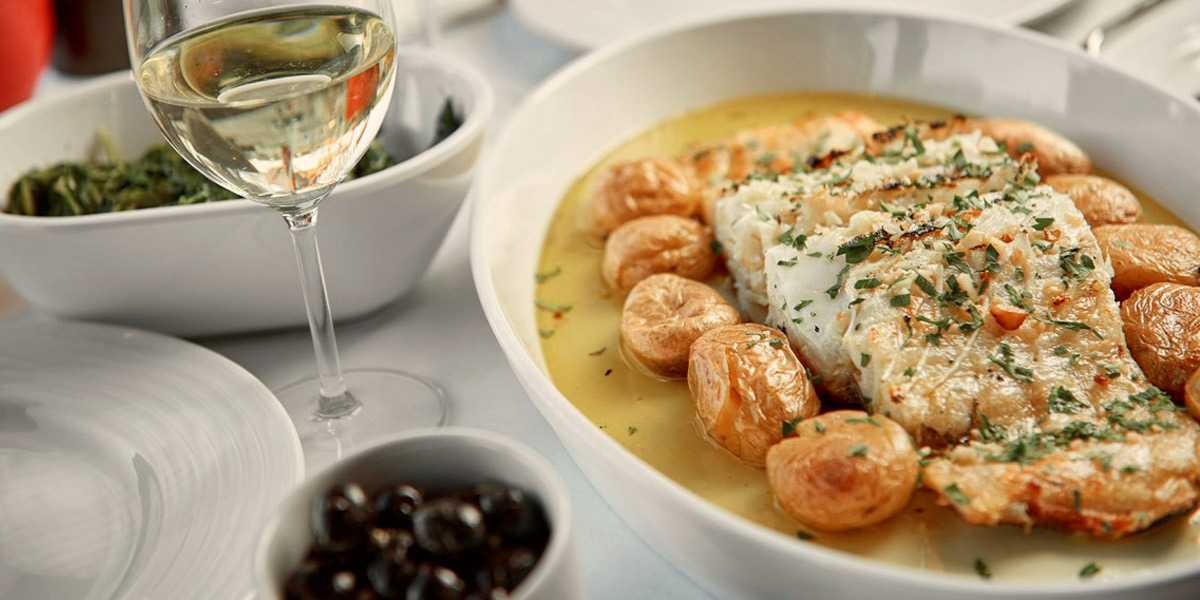 Основные ингредиенты этого блюда — оливковое масло и существенный кусок трески. Масла должно быть много. На гарнир подают молодой картофель запеченный в духовке, лук или шпинат.