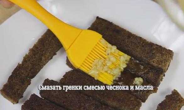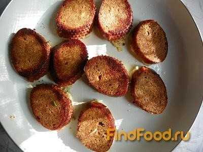 - Противень сбрызнуть маслом, положить кусочки хлеба.