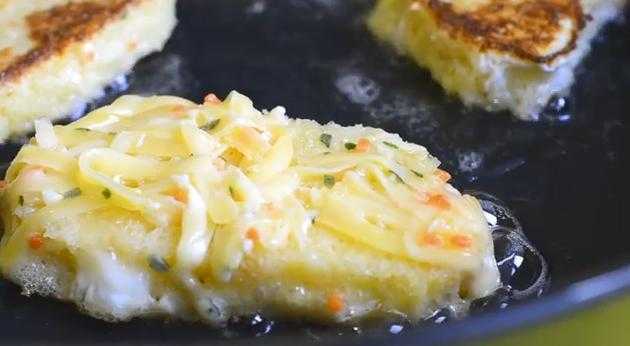 6. Жарить гренки на среднем огне до румяности картофеля.