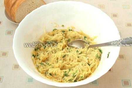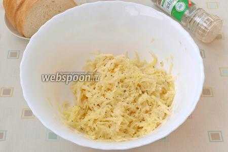 1. Картофель очистить и натереть на средней терке. Посолить и поперчить.