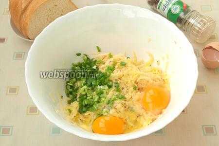 2. Добавить к картофелю сырое яйцо и измельченный зеленый лук.